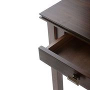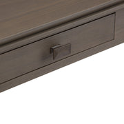 - Transitional Design includes clean angle edged table top, square, slightly tapered legs and rectangular Antique Bronze knobs