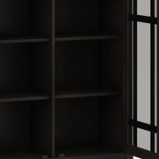 - Features 2 tempered glass doors that open to 4 adjustable shelves for versatile storage