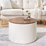 Classic 2 Piece Round Storage Ottoman Set With Drum Shaped Stool