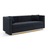 Contemporary Vertical Channel Tufted Sofa Modern Upholstered Couch For Living Room With 2 Pillows - Black
