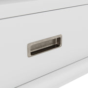 - Features shelving compartments, bottom drawers with recessed drawer pulls in an antique nickel hardware finish and anti-tip hardware