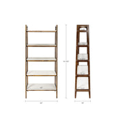 Mid - Century Design 5 Shelf Bookcase - Off White / Pecan