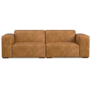 • Handcrafted, modern-style leather sofa with a clean, boxy silhouette is an oversized loveseat for people and an ideal choice for smaller living rooms, apartments, or open-concept condos.