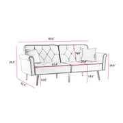 Velvet Tufted Sofa Couch With 2 Pillows And Nailhead Trim