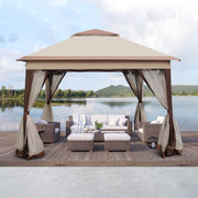 Outdoor Pop Up Gazebo Canopy 11 X 11 Ft With 2 Tier Soft Top And Removable Zipper Netting - Coffee