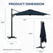 Round Cantilever Patio Umbrella With 360 Rotation & Infinite Tilt Adjustment