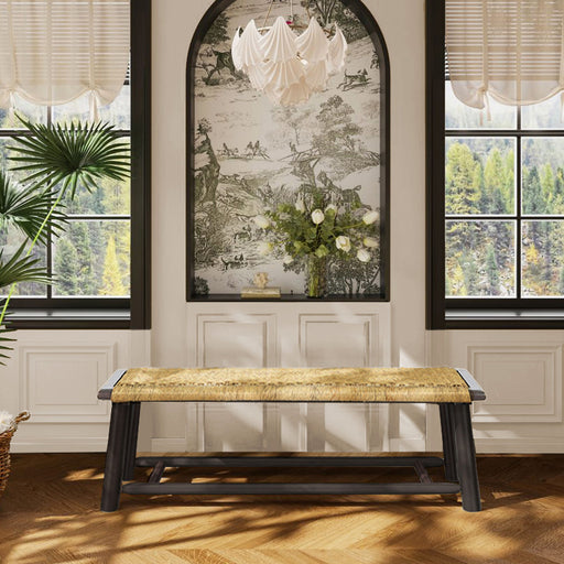 View full detailsFarmhouse Modern Solid Wood Rattan Bench Multi Functional Design 59" Indoor & Covered Outdoor Bench - Walnut