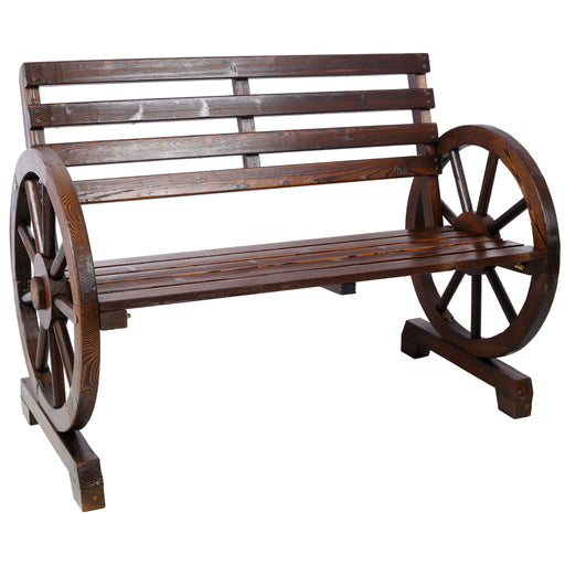 View full detailsRustic Country 2 Person Wooden Wagon Wheel Bench With Slatted Seat And Backrest - Brown