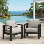 All Weather Patio Armchairs With Thick Cushions (Set of 2) - Black / Gray