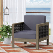 Outdoor Acacia Wood Club Chair With Wicker Accents