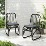 Outdoor Wicker Dining Chairs With Washable Cushion (Set of 2), Durable Rattan Chairs For Backyard, Garden, Patio - Black / Gray