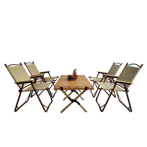 View full details5 Pieces Dining Set, Multi-Function Foldable And Portable, 1 Dining Table & 4 Folding Chairs, Indoor And Outdoor Universal - Natural