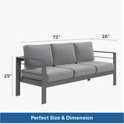 - Modern Aesthetic: Sleek frame with cushions enhances any outdoor space with contemporary style.
