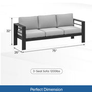 All Weather 3 Seat Patio Sofa With Thick Cushions - Black / Gray