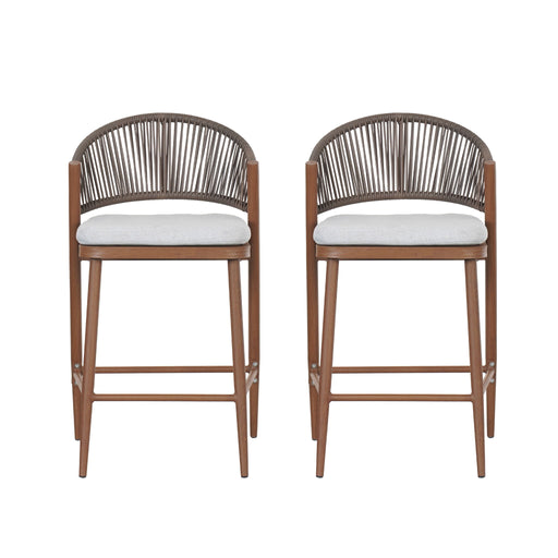 View full detailsLodi - Outdoor Matal Rope Barstool, Teak / Beige (Set of 2) - Teak / Beige