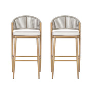 Outdoor Bar Height Aluminum Frame Counter Stools With Scallop Shaped Backrest & Water Resistant Cushions (Set of 2) - Teak