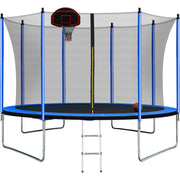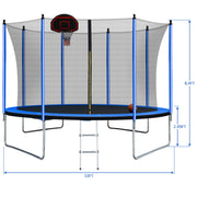 10Ft Trampoline With Basketball Hoop Inflator And Ladder (Inner Safety Enclosure) - Blue