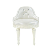 - Elegant Design: The Dorothy Ivory Finish Vanity Chair features a round armless design with a low backrest, offering a sophisticated look that is enhanced by crystal-like button tufting on the inside backrest.