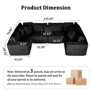 Modular U-Shaped Sectional Sofa, 6 Seater Chaise Lounge With Reversible Design - Black