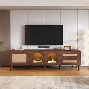 Rattan TV Stand With 3 Cabinets & 2 Drawers, Rattan-Inspired Media Console Table For Tvs Up To 80'', LED Light Entertainment Center, TV Cabinet For Living Room - Black